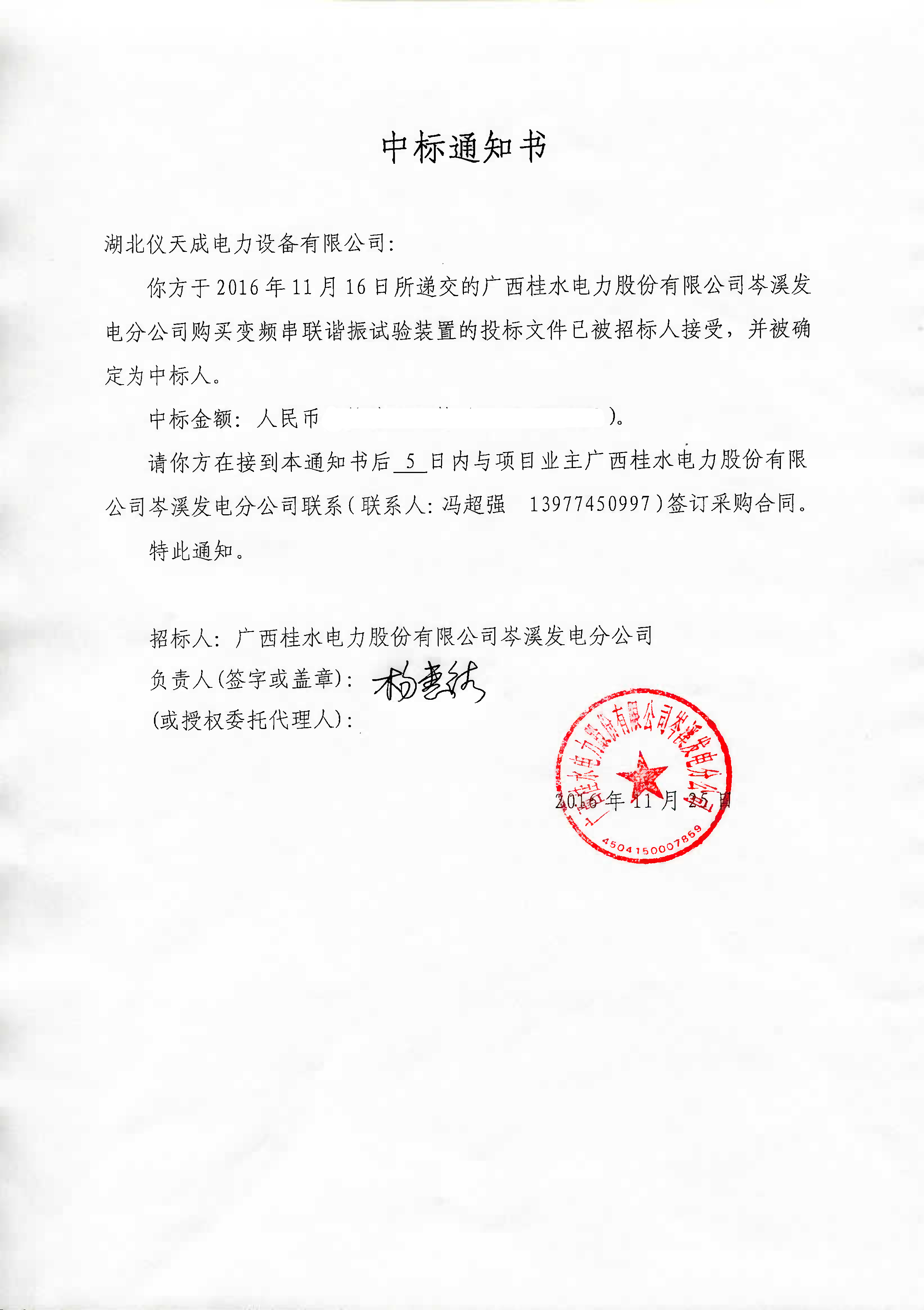 廣西桂水電力岑溪發(fā)電招標(biāo)--湖北儀天成中標(biāo)