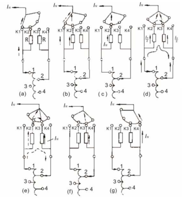 分接開關按照a-g的順序依次動作,正常動作生成如下圖所示標準波形: