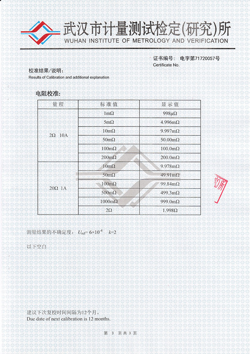 測量范圍 0.01A: 1μΩ~2kΩ