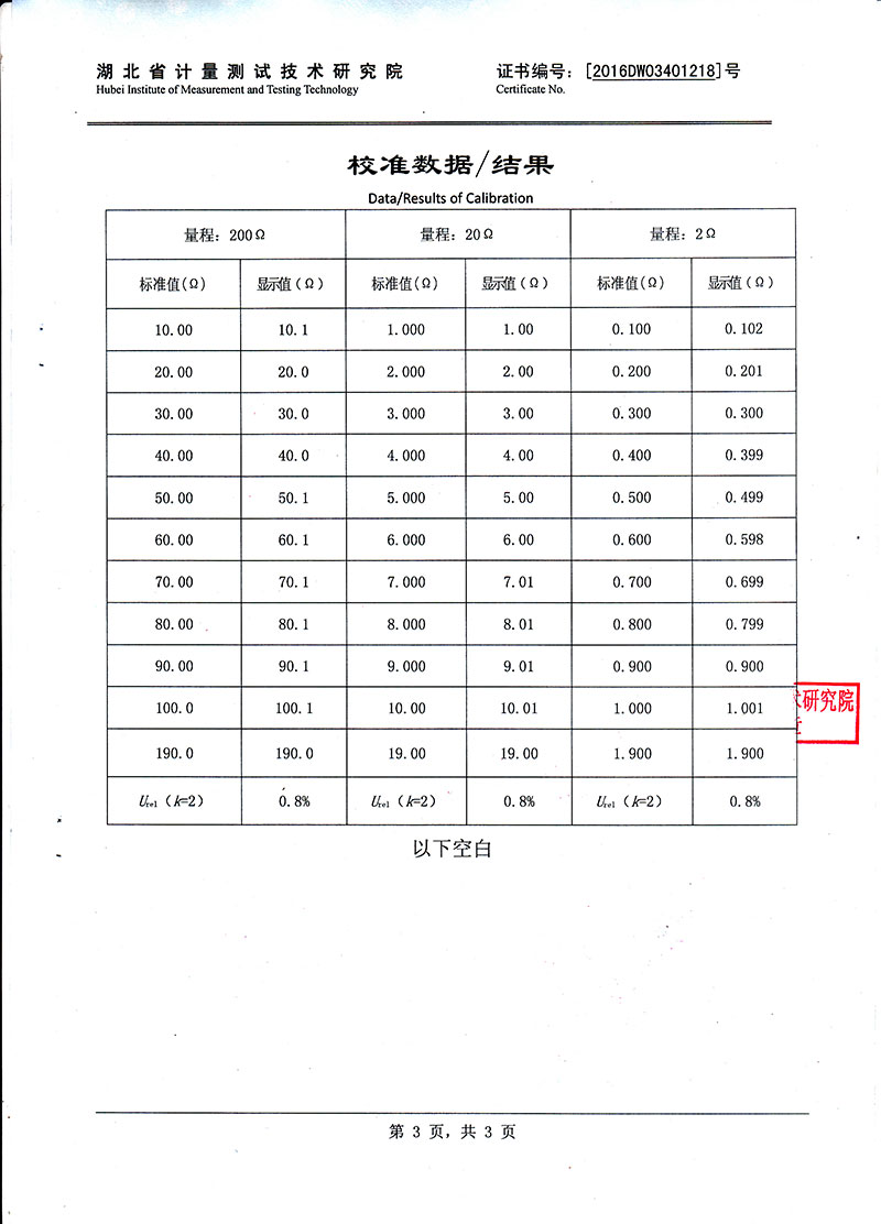 二三四線法測量接地電阻(Re)、直流電阻: 0.001Ω(0.000Ω~29.999Ω) 0.01Ω(30.00Ω~299.99Ω) 0.1Ω(300.0Ω~2999.9Ω) 1Ω(3000Ω~30000Ω) |