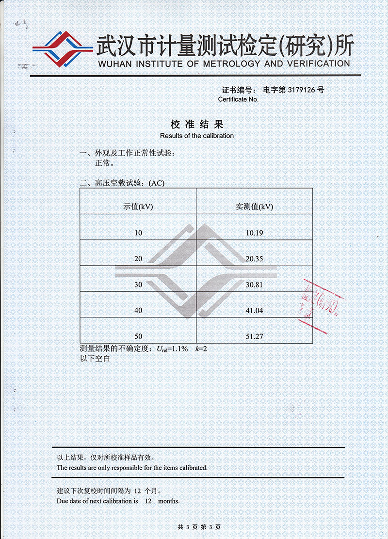 規格型號 容量(kVA) 高壓電壓(kV) 高壓電流(mA) 低壓輸入 變比(高/儀) 溫升℃(30分鐘)